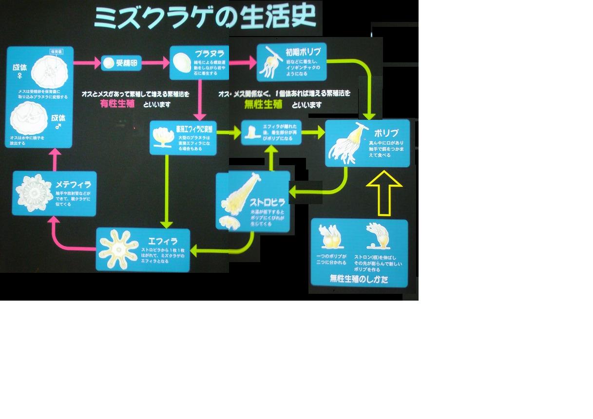 ミズクラゲの一生。(写真で撮ってあったのをがんばってつなげてみた! このサイズだと見にくいので、クリックして拡大してみてください。)
