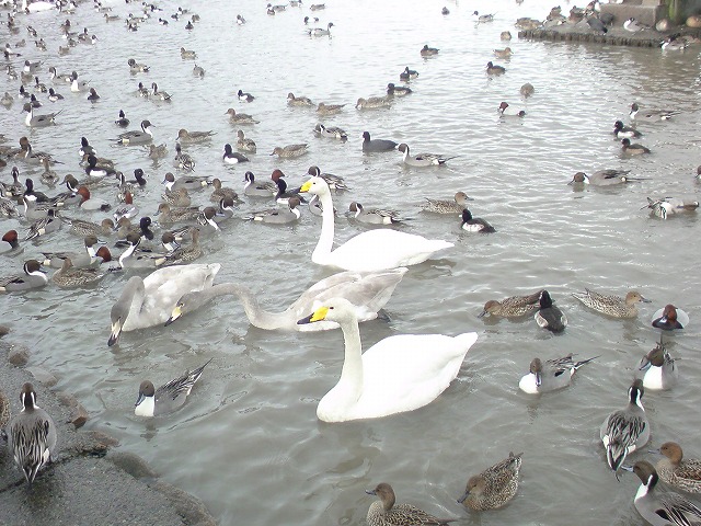 まず瓢湖によって、白鳥を愛でる。