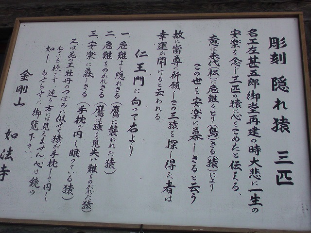 ここでは御堂の彫刻の中に彫られた三猿が有名。
