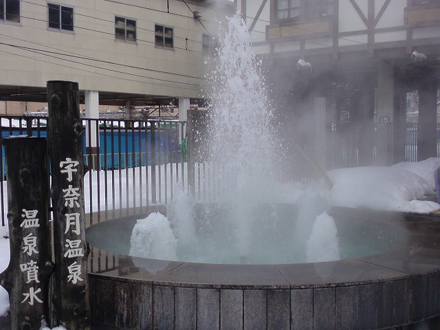 駅のまん前にあった「温泉噴水」